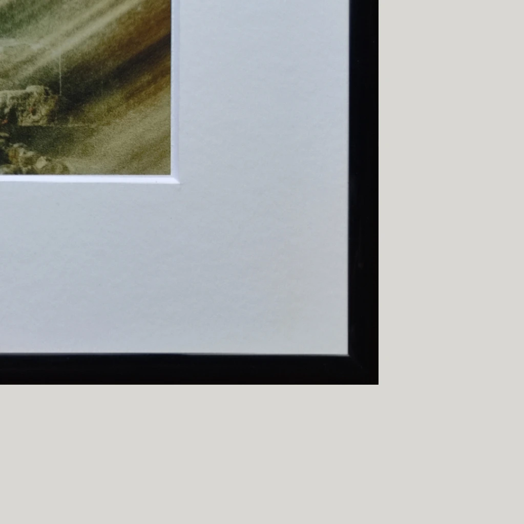Each piece is carefully framed in high-quality European frames—crafted in Sweden, the Netherlands, or Germany—and finished with premium Tru Vue® UltraVue® glass. This high-performance glass offers exceptional clarity with only 1% reflectance, reduces glare, protects against 70% of harmful UV rays, and helps preserve the artwork’s true color and detail for years to come.